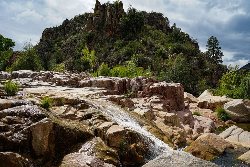 One of Payson’s hidden gems, the Water Wheel Falls Hike is a short and scenic trail that follows the East Verde River to a series of cascading waterfalls, swimming holes, and natural water slides. The hike is about 1.5 miles round-trip and is great for families, with plenty of opportunities to wade in the water and climb over smooth boulders. Along the way, you’ll find shaded spots under tall pines and natural pools perfect for cooling off on a warm day. The trail is especially popular in the summer, so arriving early is recommended. It’s a fun, refreshing hike that combines light adventure with the beauty of Arizona’s high country.