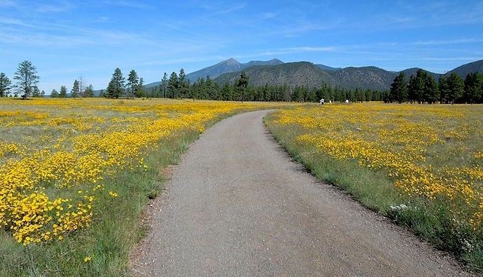 Located just minutes from downtown, Buffalo Park offers one of the most accessible and expansive Flagstaff lookout points. Situated on McMillan Mesa northeast of Downtown Flagstaff, it features a wide, flat 2-mile Loop Trail that winds through open meadows with views of the San Francisco Peaks and Mount Elden. It’s a great spot for families, joggers, and dog-walkers, and if you’re lucky, you might even spot the resident mule deer that frequent the area.