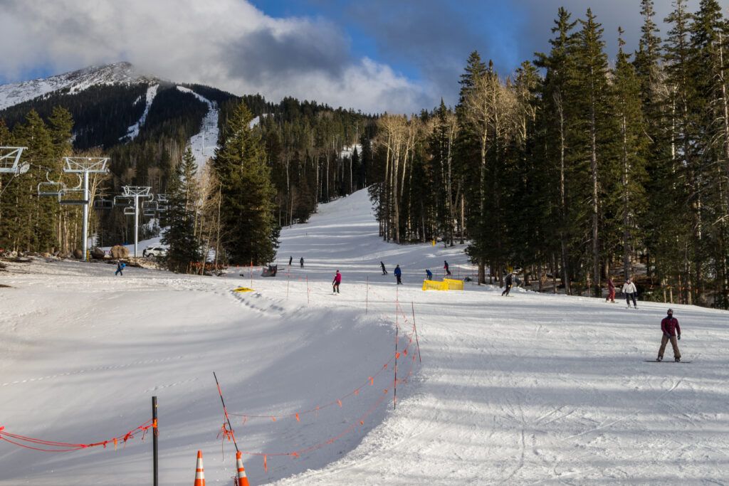 Located just 20 minutes from Flagstaff, Arizona Snowbowl is one of the region’s most popular winter attractions. Families can enjoy activities ranging from skiing and snowboarding to relaxing on the scenic gondola that carries guests high above the San Francisco Peaks. For beginners and younger kids, the learner areas and ski lessons provide a welcoming introduction to snow sports.